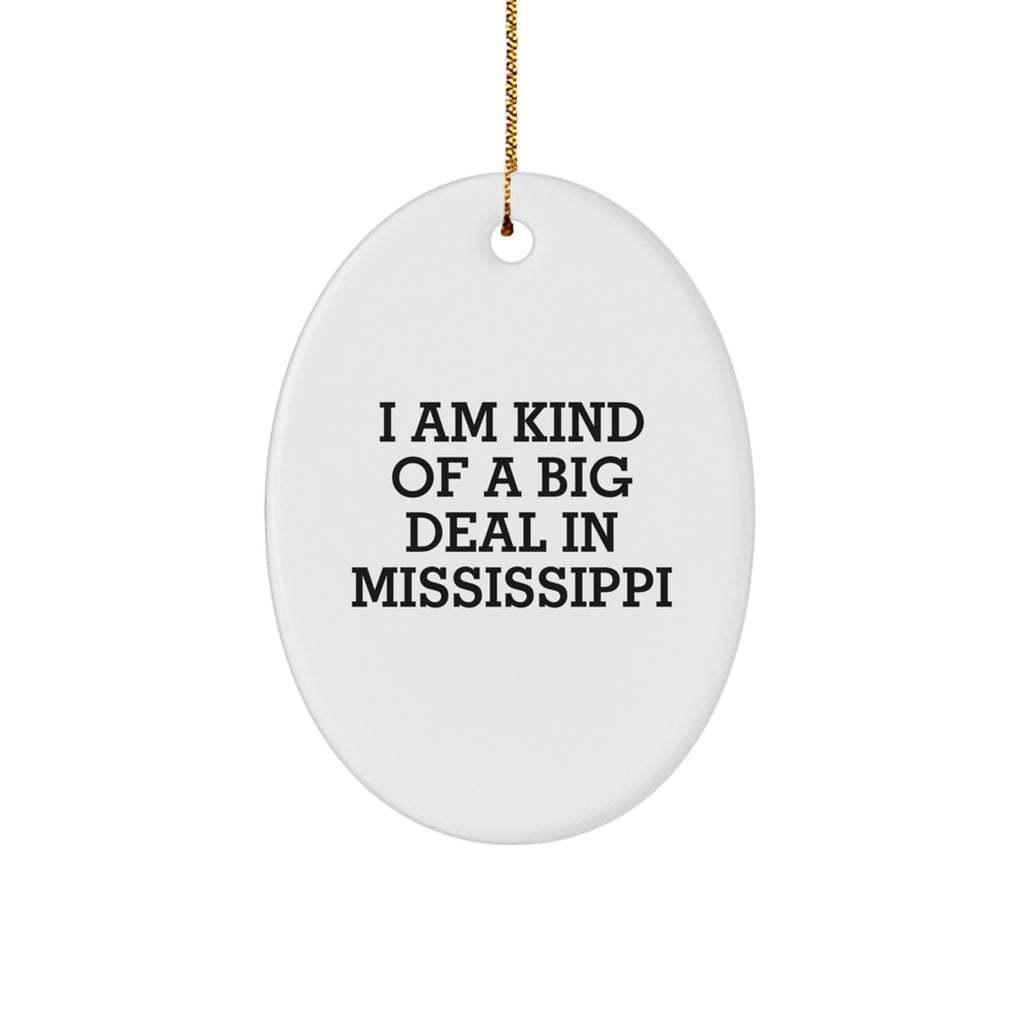 Mississippi Oval Ornament with 'I Am Kind Of A Prime Selection In Mississippi' Quote, Gifts from Friends to Family for Christmas