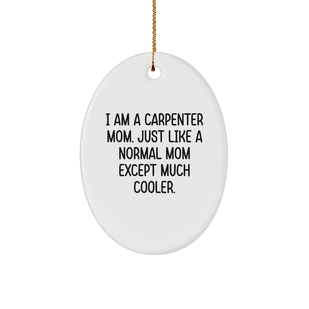 Carpenter Gifts from Mom - Funny Oval Ornament for Him or Her - 'I Am A Carpenter Mom' Quote White Oval Shape Christmas Unique Gifts