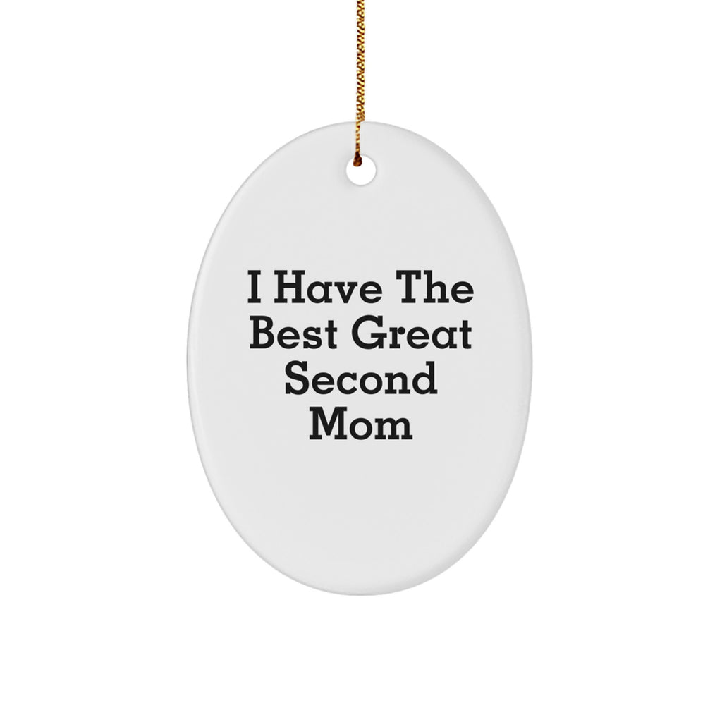 - The quote 'I Have The Best Great Second Mom' is a perfect way to express your gratitude for all she does. This funny oval ornament is a thoughtful gift that will be treasured for years to come.