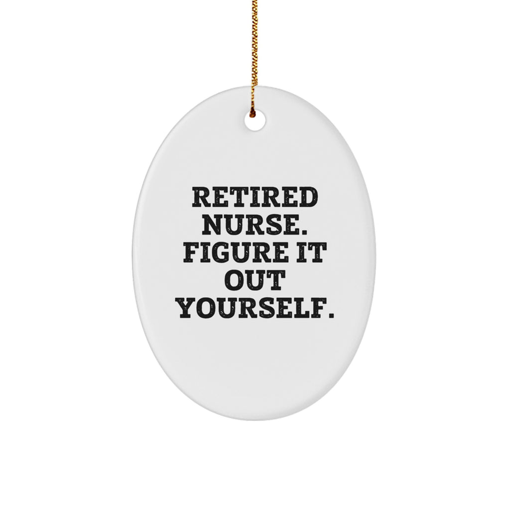 Funny Nurse Oval Ornament Gifts from Men to Their Favorite Retired Nurse, Figure It Out Yourself.