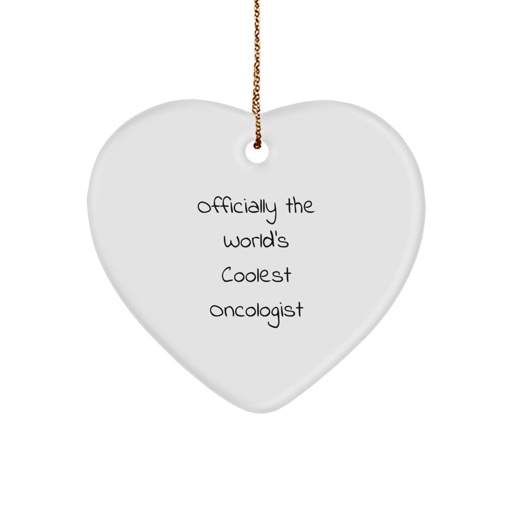 - This Heart Ornament is a great gift to give to an Oncologist, whether you're a friend, family member, or coworker. It's a unique and thoughtful way to show your appreciation for their hard work and dedication. The funny quote 'Officially The World's Coolest Oncologist' will make them feel special.