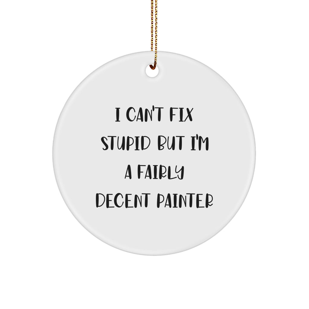 Funny Painter Gifts from Men to Women Friends Circle Ornament - 'I Can't Fix Stupid But I'm A Fairly Decent Painter' Christmas Unique