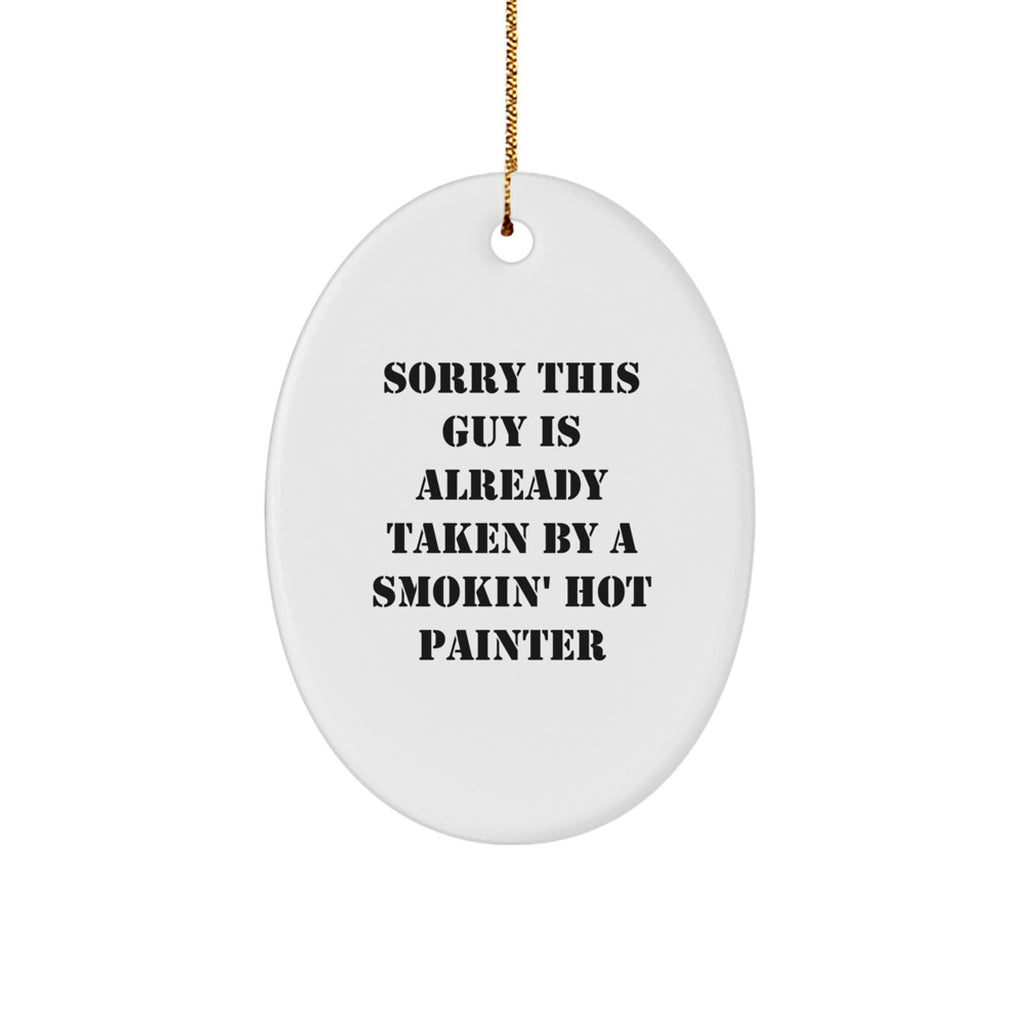 Painter Gifts for Him Funny Oval Ornament Gifts from Friends Christmas Unique Gifts 'Sorry This Guy Is Already Taken By A Smokin' Hot Painter'