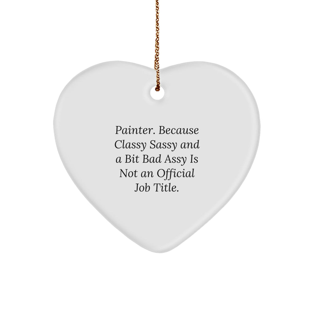 Painter Gifts from Friends - Funny Heart Ornament for Christmas - 'Painter. Because Classy Sassy And A Bit Fearlessy Is Not An Official Job Title.'