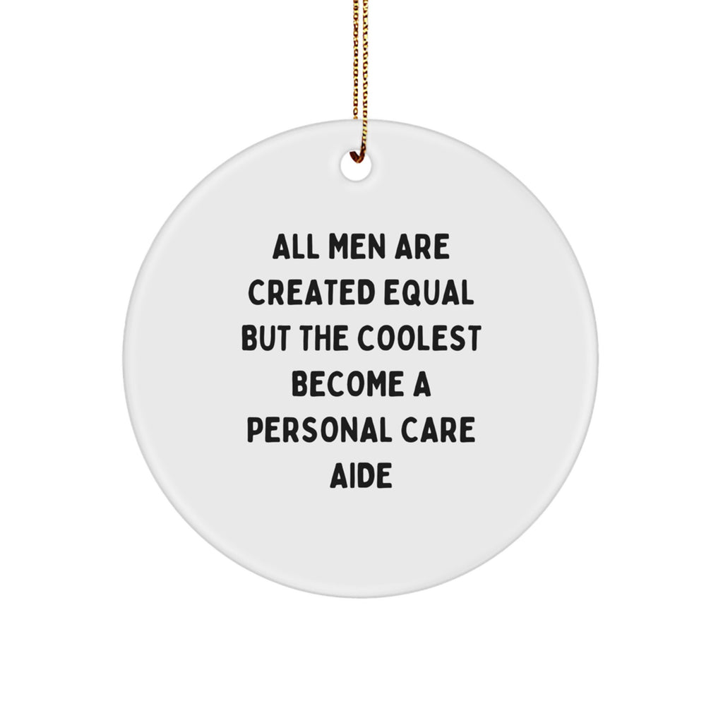 - This Circle Ornament is a unique and funny way to show your appreciation for the Personal Care Aide in your life. The quote 'All Men Are Created Equal But The Coolest Become A Personal Care Aide' is a humorous take on the importance of Personal Care Aides, making it a great conversation starter.