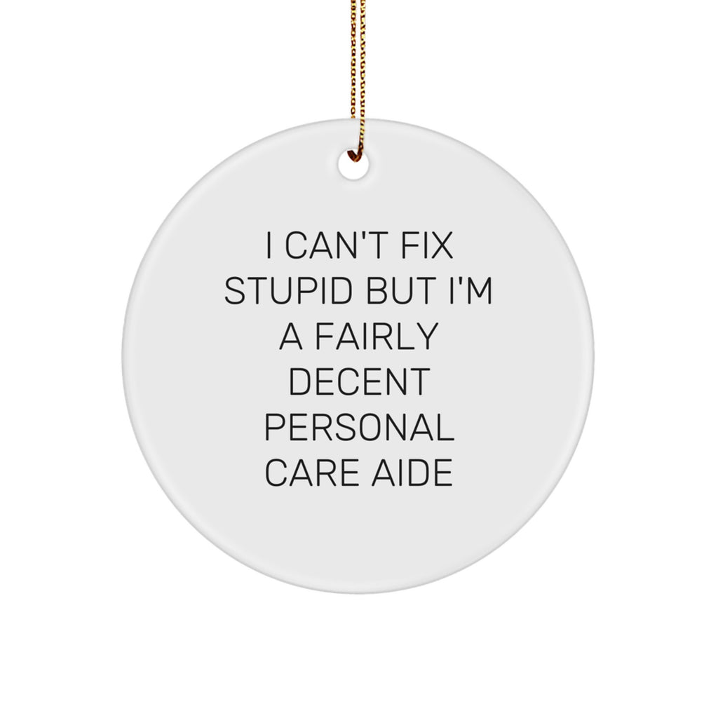 Funny Personal Care Aide Gifts from Friends - I Can't Fix Stupid But I'm A Fairly Decent Personal Care Aide, Circle Ornaments for Christmas Unique Gifts for Personal Care Aides