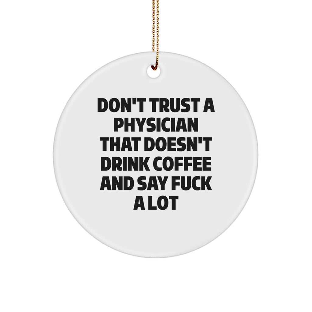 Funny Physician Gifts: Don't Trust A Physician That Doesn't Drink Coffee And Say 'F--k A Lot' Circle Ornament, Gifts from Men to Physician, Gifts for Physician, Christmas Unique Gifts