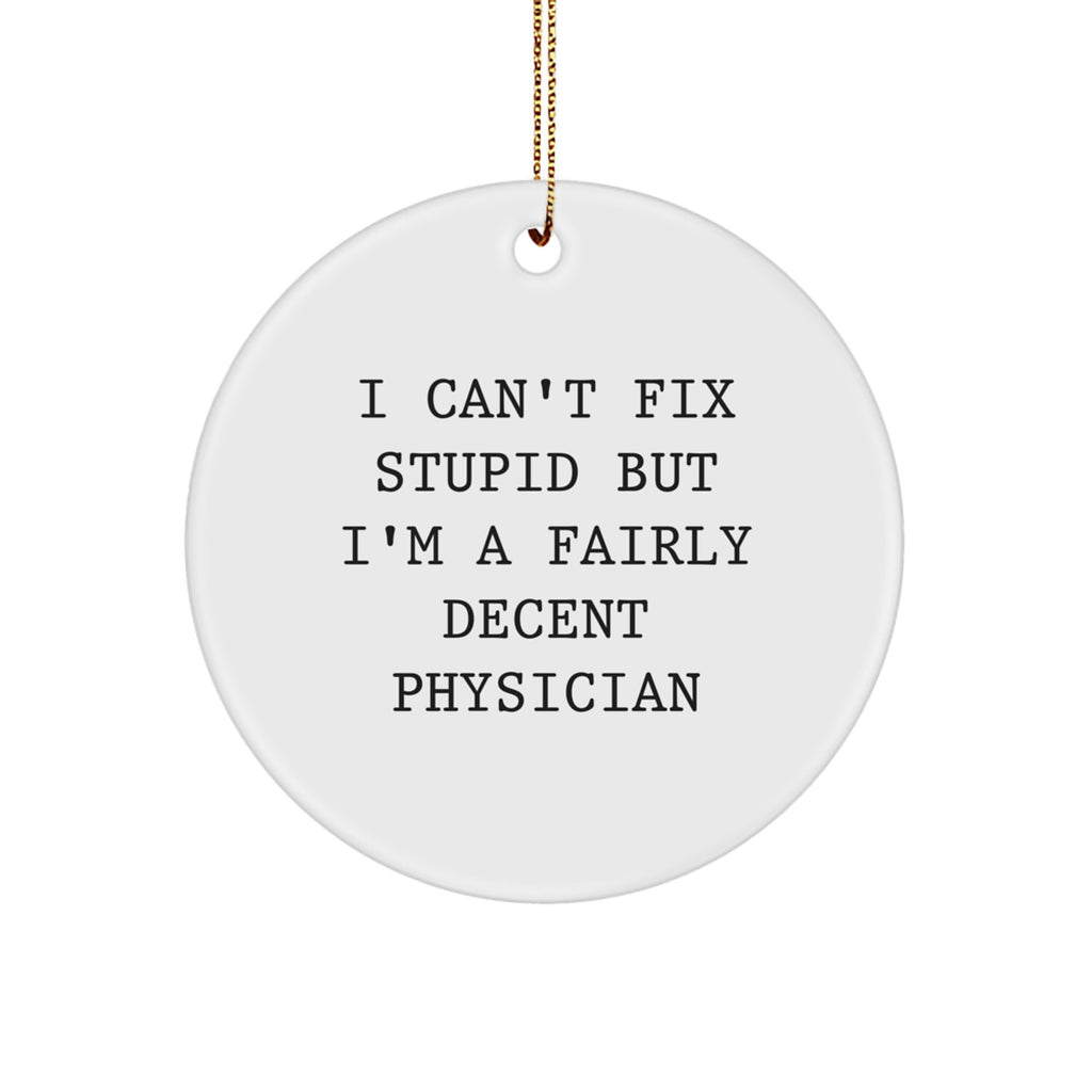 Funny Quirky Physician Gifts from Friends to Physician - I Can't Fix Stupid But I'm A Fairly Decent Physician Christmas Ornament