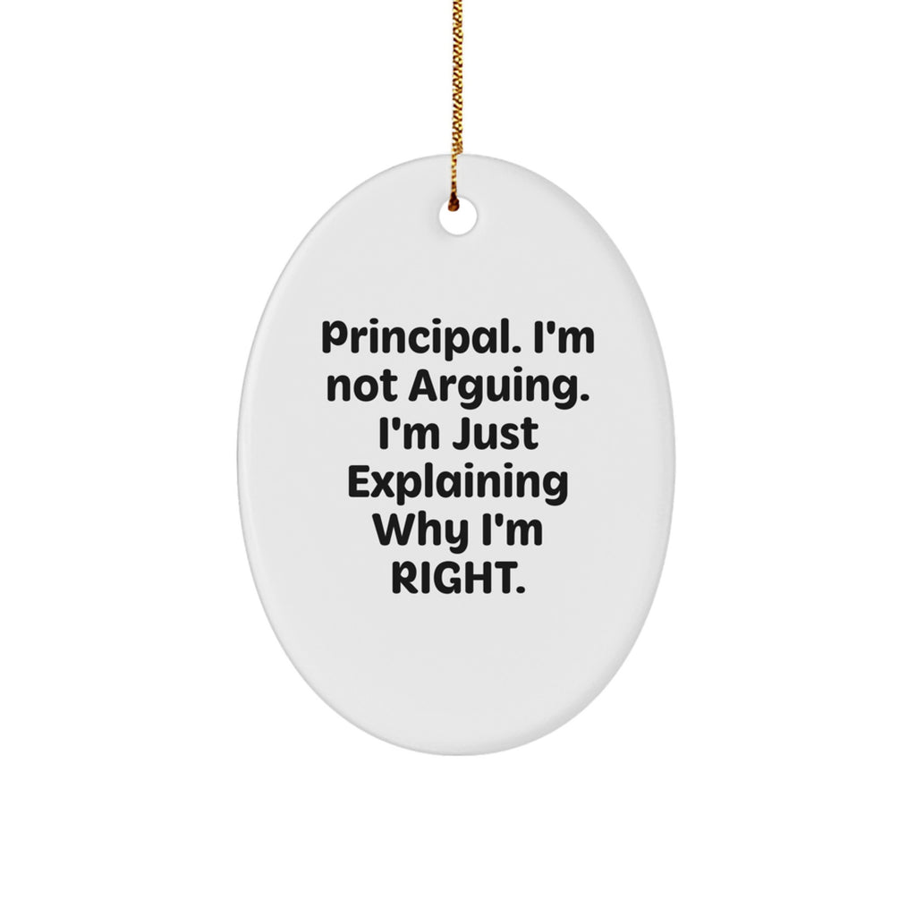 - This funny Oval Ornament is the perfect way to show your principal that you appreciate their sense of humor and hard work. The quote 'I'm Not Arguing. I'm Just Explaining Why I'm Right.' is a humorous way to poke fun at the stereotype of principals being strict and serious.