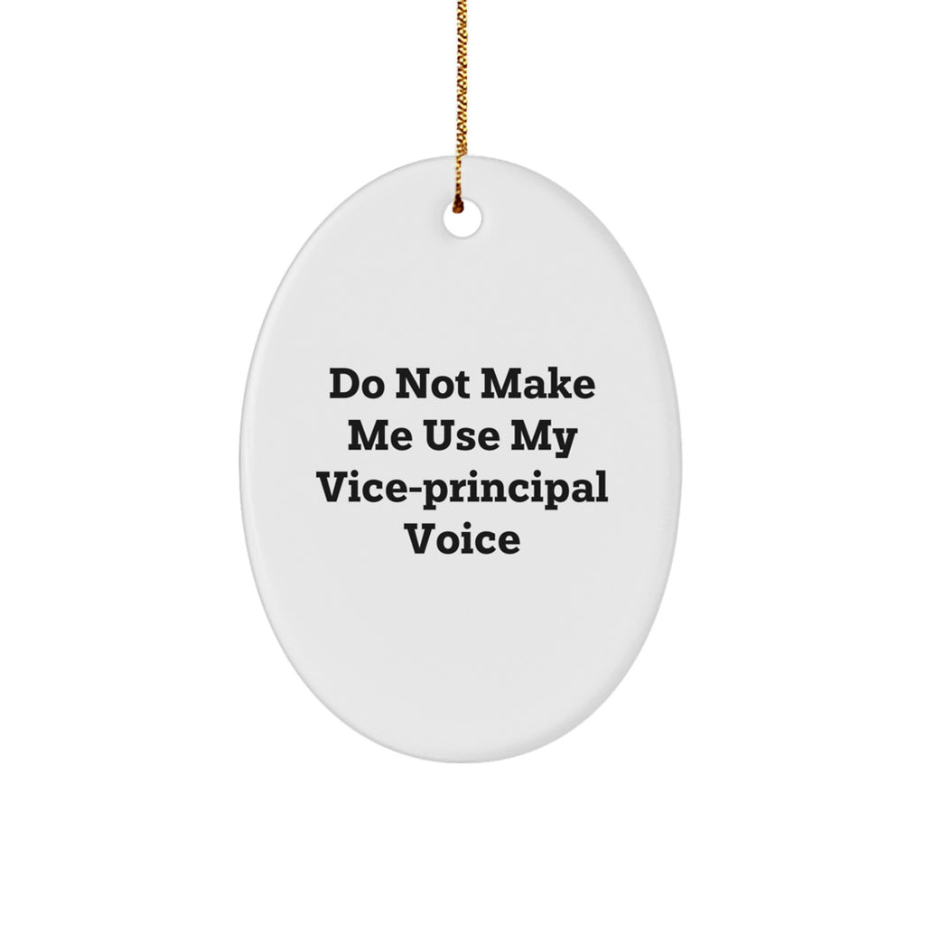 - Make a funny and heartfelt gift for the Vice-principal in your life with this Oval Ornament. The quote 'Do Not Make Me Use My Vice-principal Voice' is sure to bring a smile to their face and show your appreciation for their hard work and dedication.