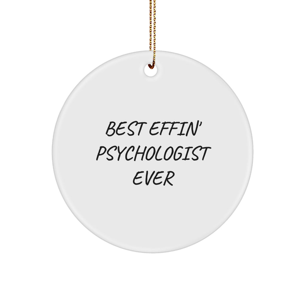 - This Best Effin' Psychologist Ever quote Christmas Circle Ornament is the perfect way to show your appreciation for the Psychologist in your life. Made from sturdy MDF with a high-gloss plastic finish, this ornament is vibrantly printed from edge-to-edge via Sublimation, ensuring bright, vivid colors that will last for years to come.