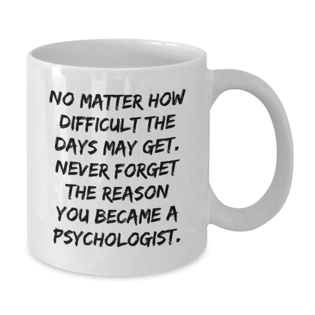 - This funny white coffee mug is a great gift for Psychologists who appreciate a good sense of humor. The quote 'No Matter How Difficult The Days May Get. Never Forget The Reason You Became A Psychologist.' is a perfect reminder of the challenges and rewards of the profession.
