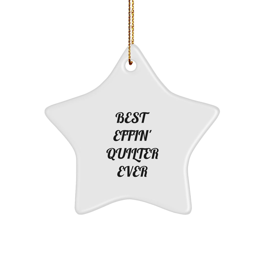 - This 'Best Effin' Quilter Ever' Star Ornament is perfect for quilters and crafty enthusiasts, offering a stunning white star shape that's designed to add a touch of holiday magic to any room. With its vibrant colors and high-gloss finish, this ornament is sure to stand out on your Christmas tree or mantle. Made from durable MDF and lightweight, it's a great choice for families with children or pets.