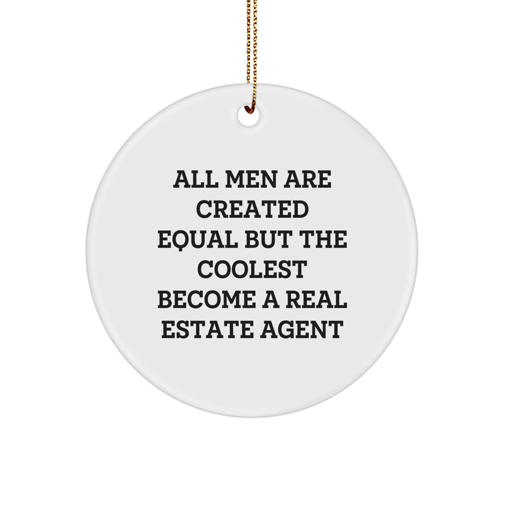 Funny Real Estate Agent Gifts from Men - 'All Men Are Created Equal But The Coolest Become A Real Estate Agent' Circle Ornament for Christmas