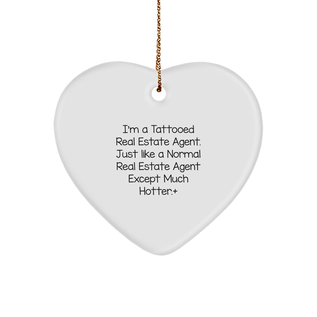 Funny Real Estate Agent Gifts, Heart Ornament for Him or Her, 'I'm A Tattooed Real Estate Agent...' - Gifts from Friends, Gifts for Real Estate Agent, Christmas Unique Gifts
