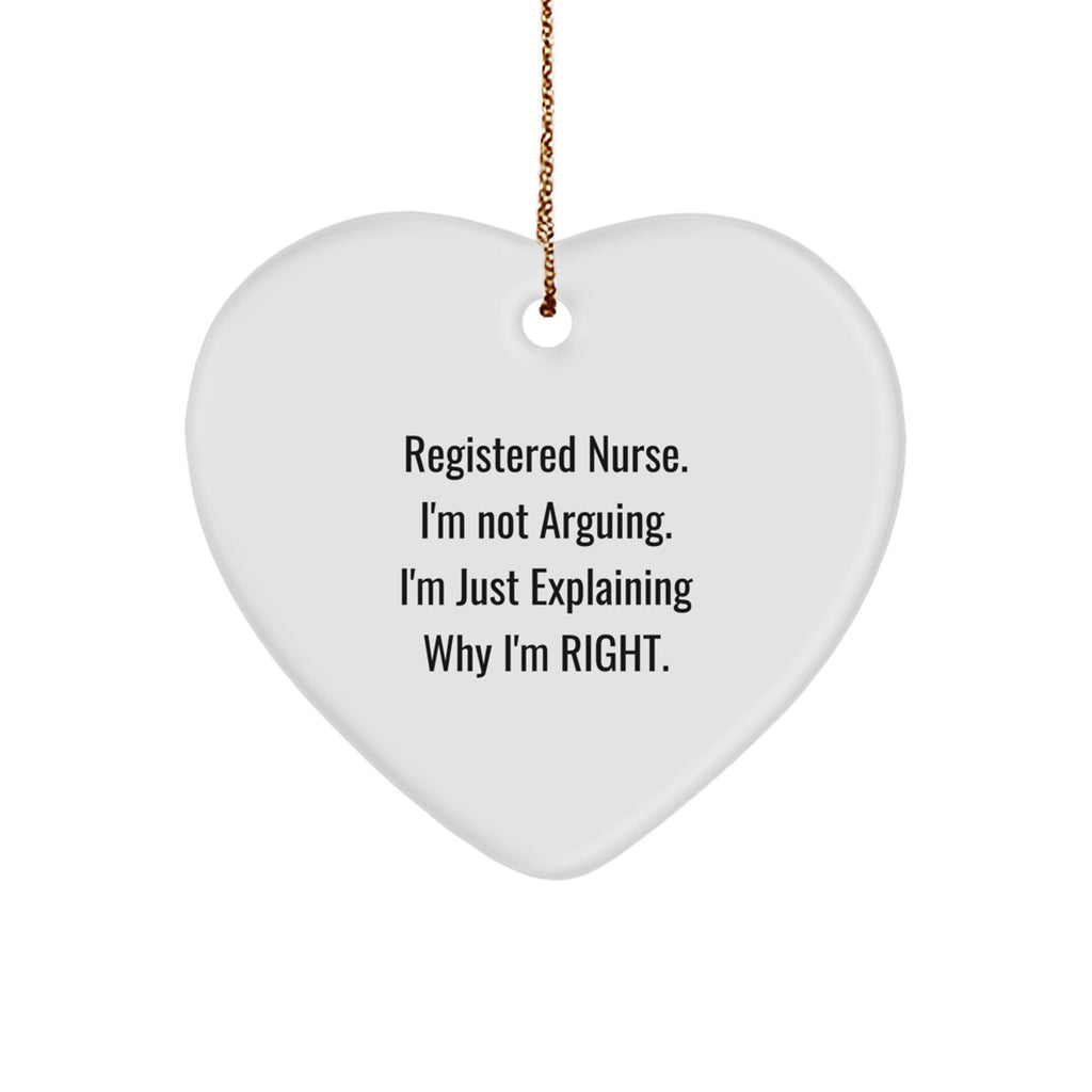 - This funny heart ornament with the inspirational quote 'Registered Nurse. I'm Not Arguing. I'm Just Explaining Why I'm Right.' is the ideal gift for registered nurses in your life. Show your appreciation for their hard work and dedication with this unique and thoughtful gift.