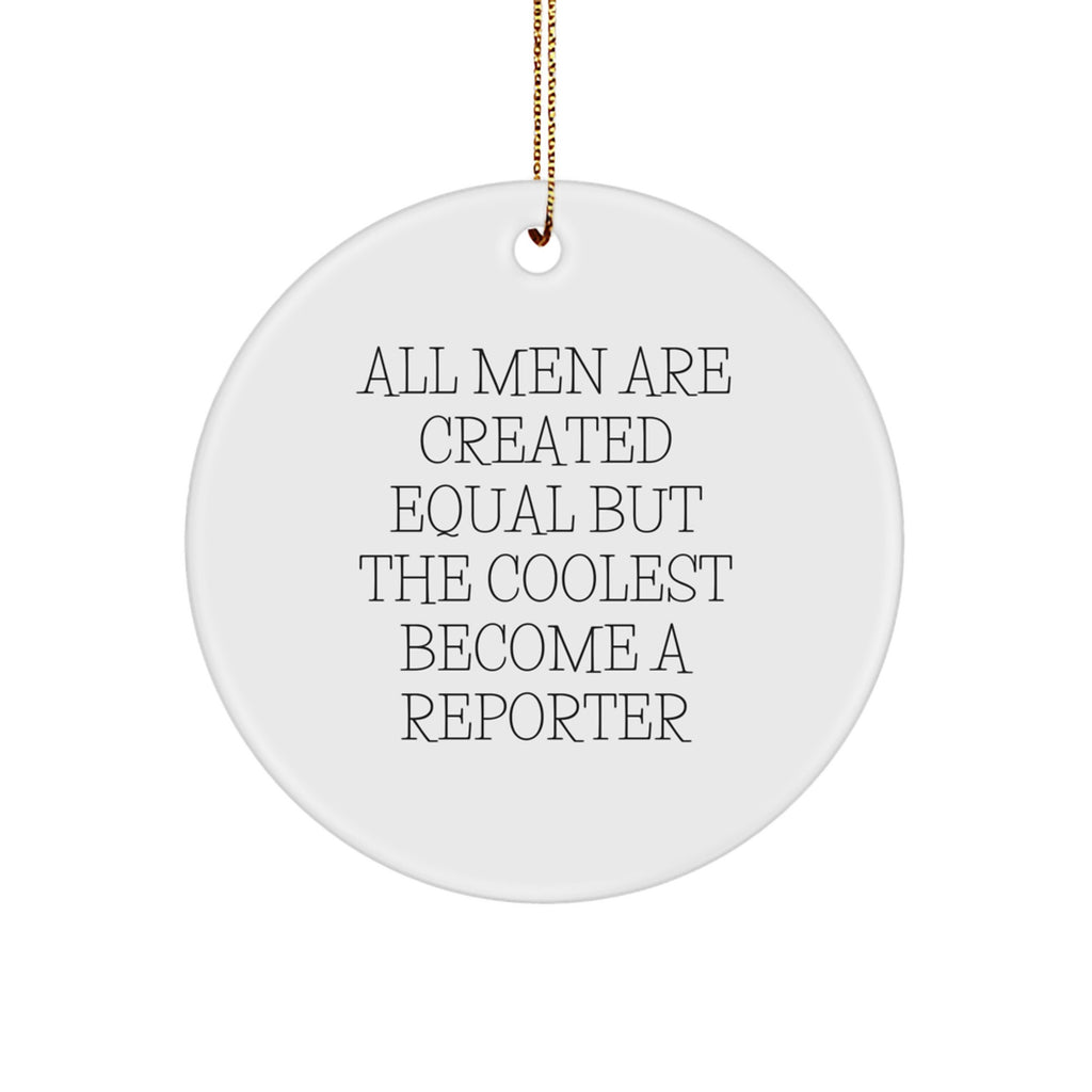 - 'All Men Are Created Equal But The Coolest Become A Reporter' takes center stage on this reporter-themed circle ornament, making it a unique addition to your Christmas decor. With its vibrant print and high-gloss finish, this ornament is sure to brighten up any room.