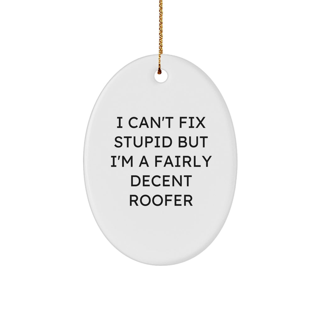 Funny Roofer Gifts for Men - I Can't Fix Stupid, But I'm Decent Oval Ornament, White, Christmas Unique Gifts from Friends to Family