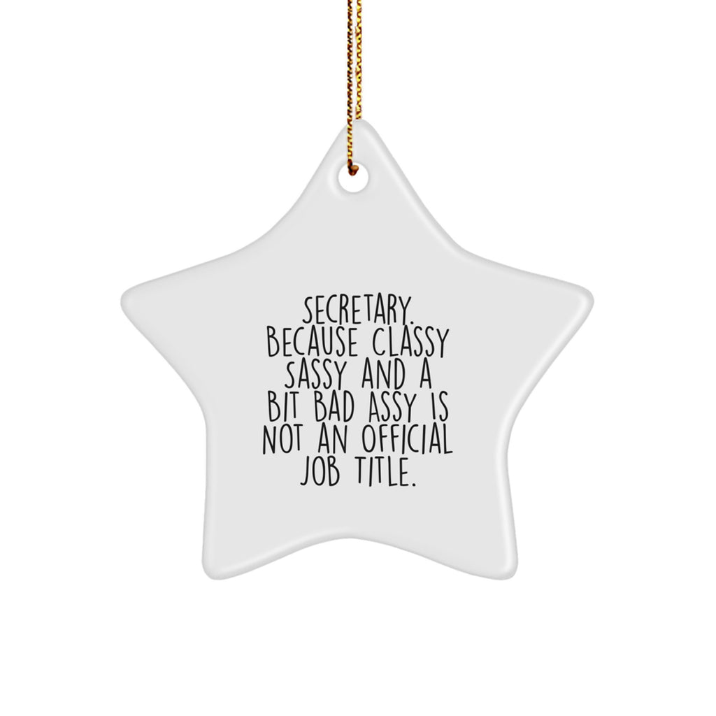Funny Secretary Gifts from Friends for Christmas - Star Ornament with Quote, 'Secretary. Because Classy Sassy And A Bit Fearlessy Is Not An Official Job Title.'