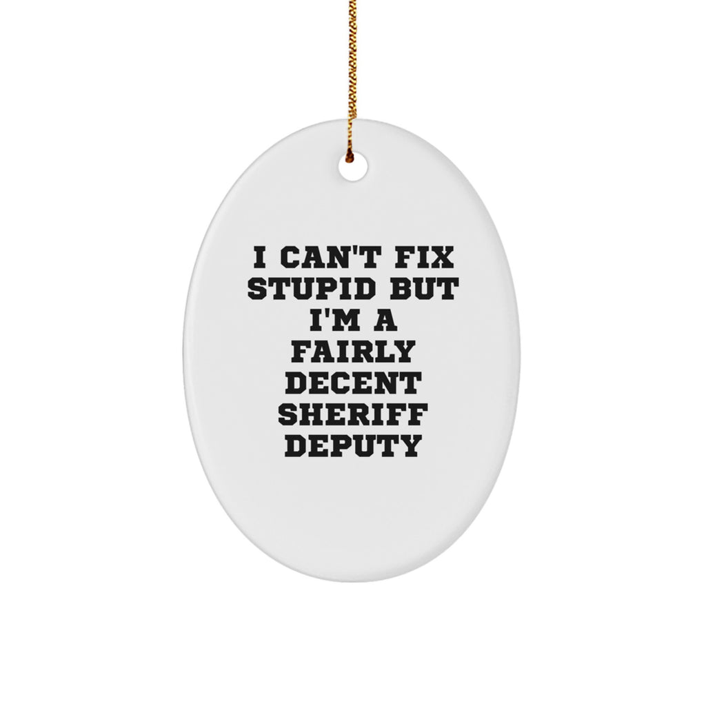 Funny Sheriff Deputy Oval Ornament Gifts from Friends for Christmas - 'I Can't Fix Stupid But I'm A Fairly Decent Sheriff Deputy'
