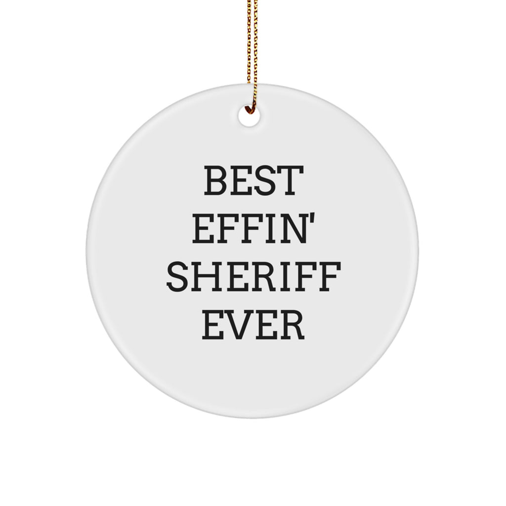 Funny Sheriff Gifts for Men, Best Effin' Sheriff Ever Circle Ornament, Christmas Unique Sheriff Present, Gifts from Men for Sheriff