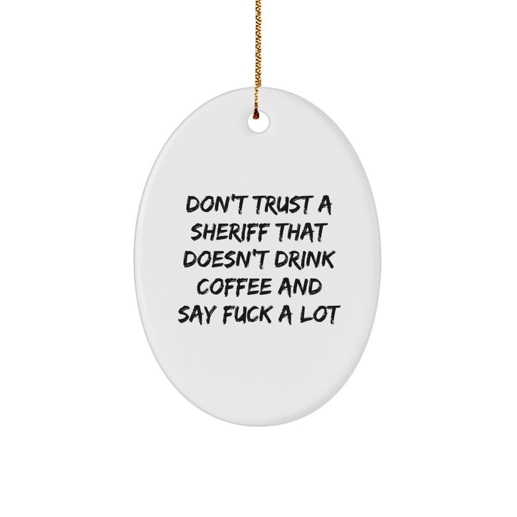 Funny Sheriff Gifts Oval Ornament, Christmas Memorable Presents for Sheriff, Men, Women, Friends, Family, 'Don't Trust A Sheriff That Doesn't Drink Coffee And Say F*** A Lot'