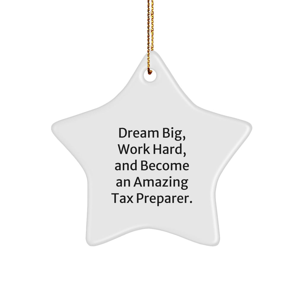 - This star ornament is a thoughtful and unique gift for tax preparers, making it a great way to show your appreciation and support for their hard work and dedication. Its inspirational quote, 'Dream Big, Work Hard, And Become An Amazing Tax Preparer,' will surely motivate the recipient to tackle their work with enthusiasm and dedication.