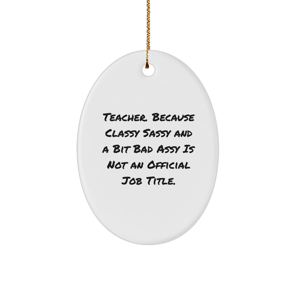 Funny Teacher Gifts from Friends - 'Teacher. Because Classy Sassy And A Bit Fearlessy Is Not An Official Job Title.' Oval Ornament for Christmas