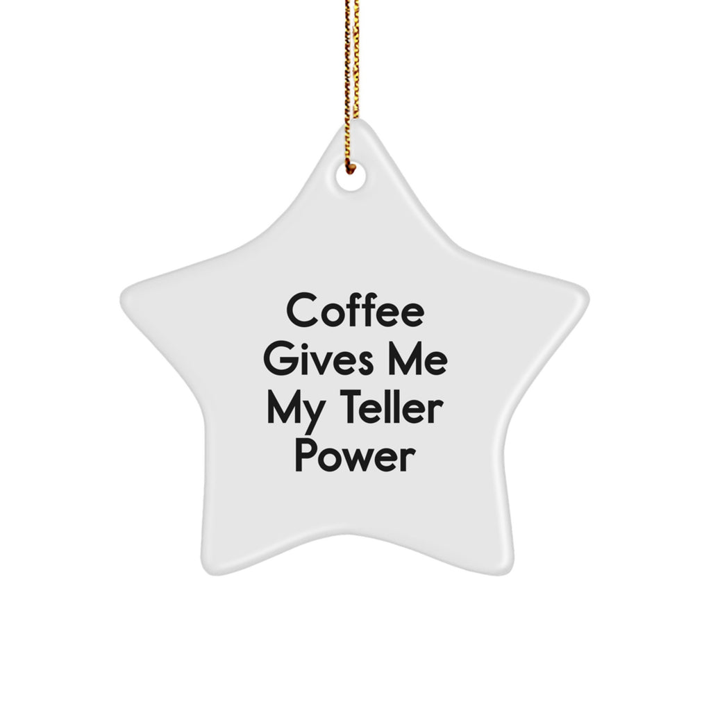 Funny Teller Quote Gifts from Friends for Christmas Star Ornament, Coffee Gives Me My Teller Power, White, 3.25 inches, Durable MDF with High-Gloss Finish
