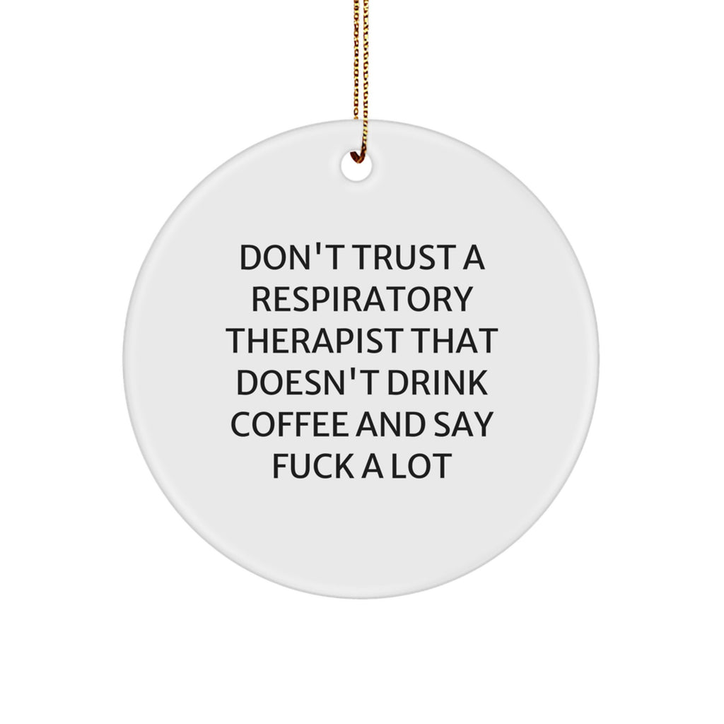 Funny Gifts for Respiratory Therapists, Don't Trust a Respiratory Therapist That Doesn't Drink Coffee Saying Funny Quotes, Circle Ornament, Christmas Unique Gifts from Friends