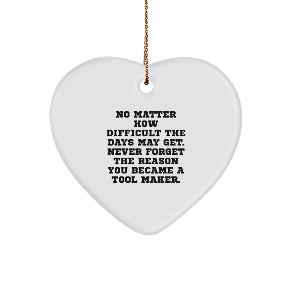 Unique Tool Maker Gifts from Friends, Christmas Unique Gifts for Tool Makers, Inspirational Heart Ornament 'No Matter How Difficult The Days May Get.