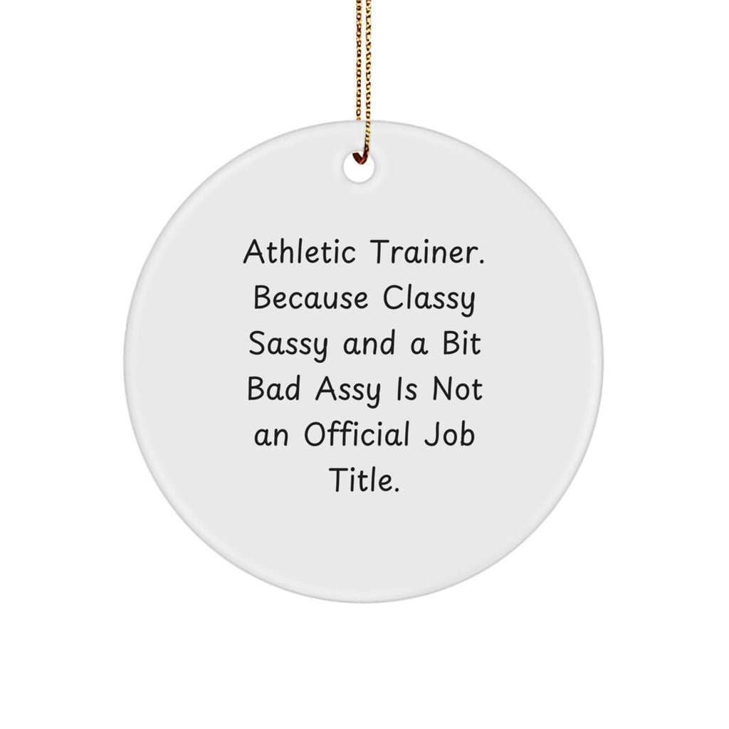 - Give the gift of humor and style with this unique Athletic Trainer gift. Perfect for Christmas or any occasion, this circle ornament is a thoughtful and funny way to show your appreciation for your favorite Athletic Trainer.