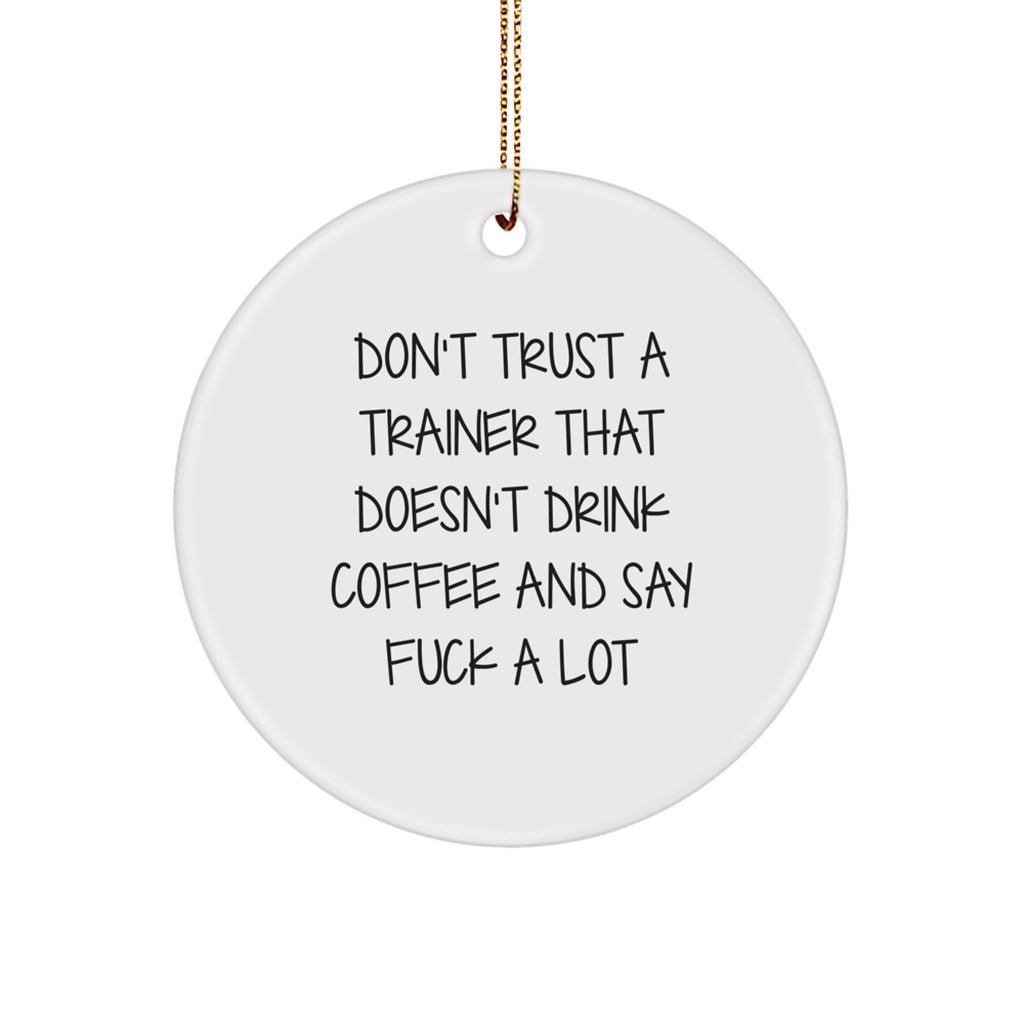 Funny Trainer Gifts from Men to Friends - Don't Trust A Trainer That Doesn't Drink Coffee And Say F--k A Lot, White Circle Ornament for Christmas