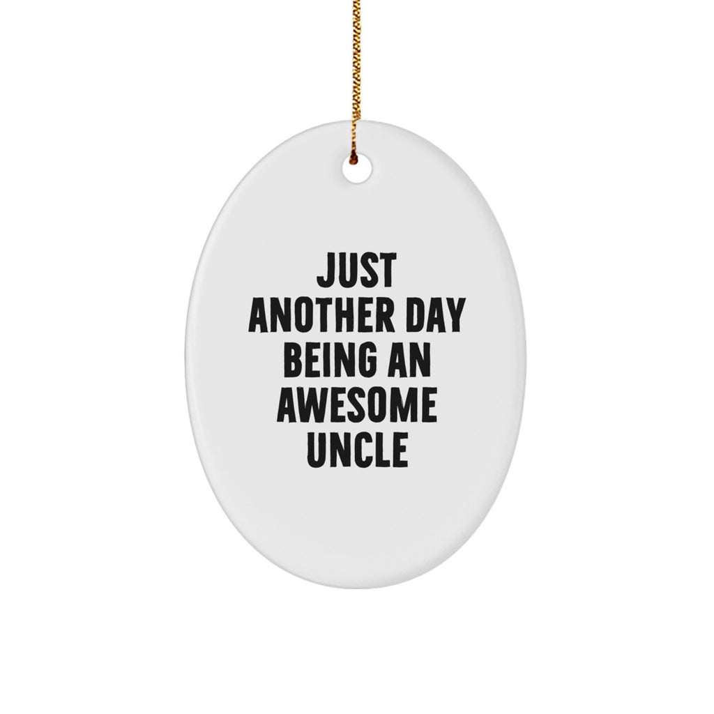 Funny Uncle Gifts from Men for Family Member - Oval Ornament with 'Just Another Day Being An Awesome Uncle' Quote, Unique Christmas Decorations