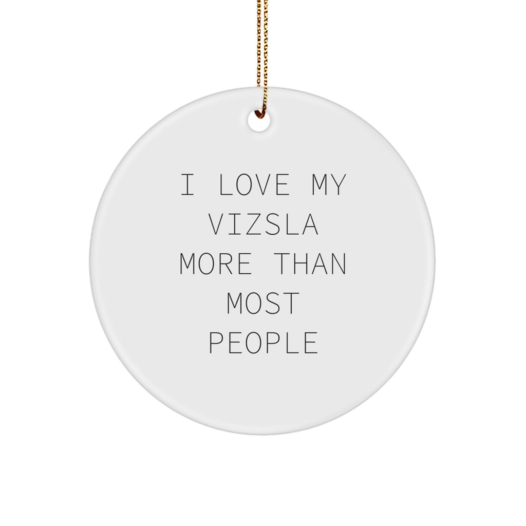 Vizsla Dog Lovers' Delight, 'I Love My Vizsla More Than Most People', Circle Ornament Gifts from Friends, Family, or Coworkers, Unique Christmas Unique Gift Ideas