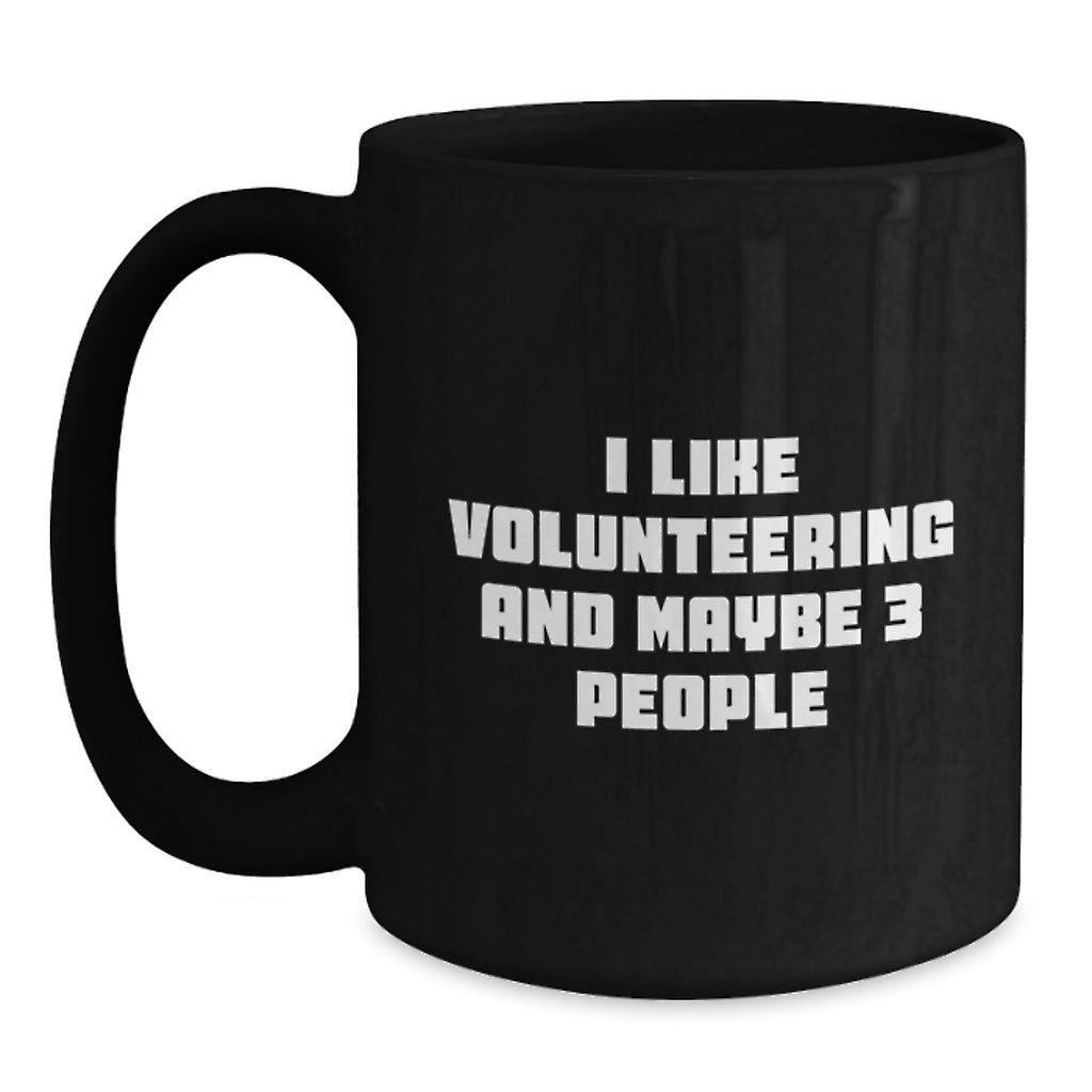 - The quote 'I Like Volunteering And Maybe 3 People' is a humorous way to express your love for Volunteering. This Black Coffee Mug is a great way to start the new year and show your appreciation for the people who make a difference in your life. It's a thoughtful and personalized gift that will surely be cherished.