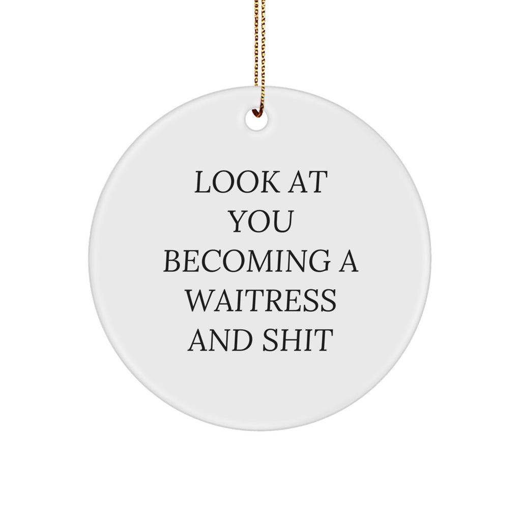 - Don't miss out on the opportunity to give a thoughtful and funny gift to the Waitress in your life. Order your 'Look At You Becoming A 'Waitress And Shit'' Circle Ornament today and make this Christmas one to remember! It's the ideal gift for coworkers, friends, or family members, and it's sure to bring a smile to their face.