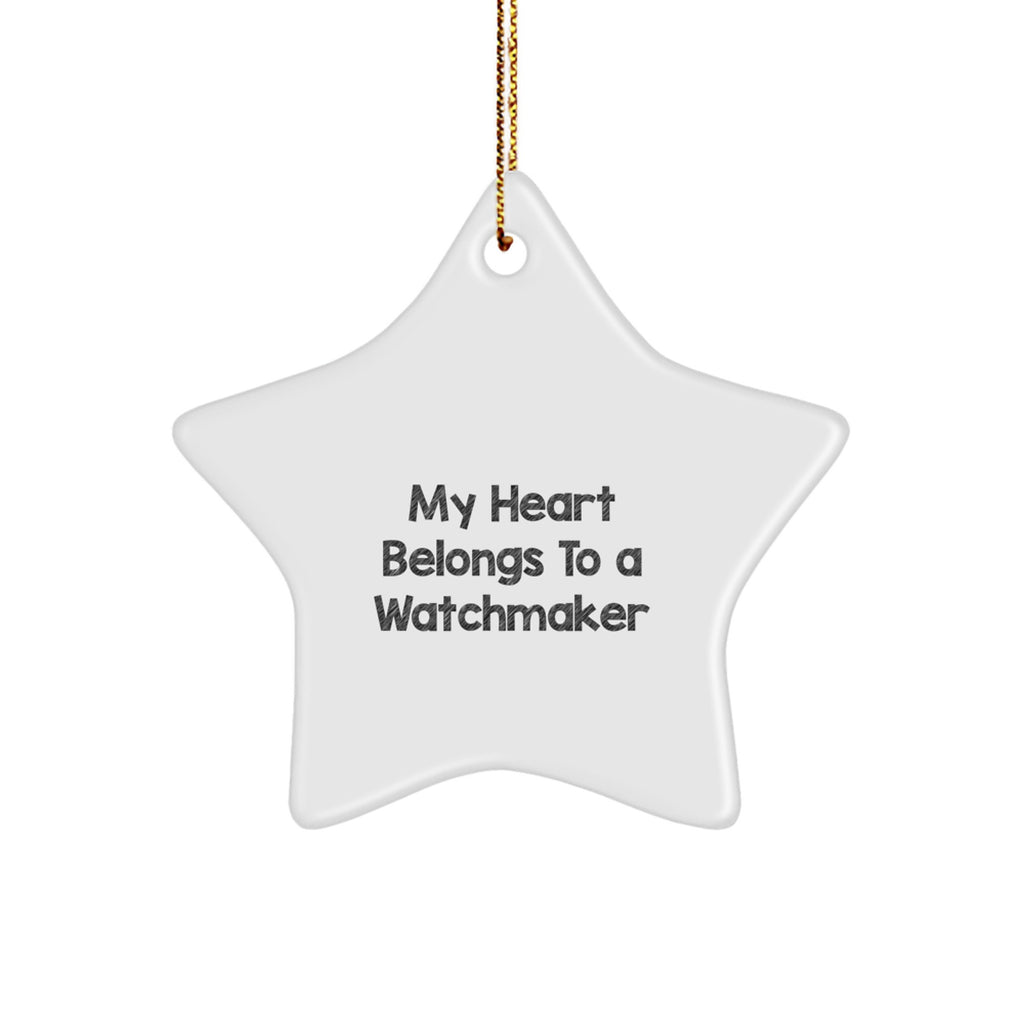 Then you're in luck because this beautiful Star Ornament with the quote 'My Heart Belongs To A Watchmaker' is the perfect way to show your appreciation and love for the art of Watchmaking. This ornament is a stunning representation of the magic and wonder of the stars, and the quote adds a personal touch that will make it a treasured keepsake for years to come. Whether you're a Watchmaker yourself or just admire the intricate details of timepieces, this ornament is a lovely addition to any Watchmaker's workspace or home.