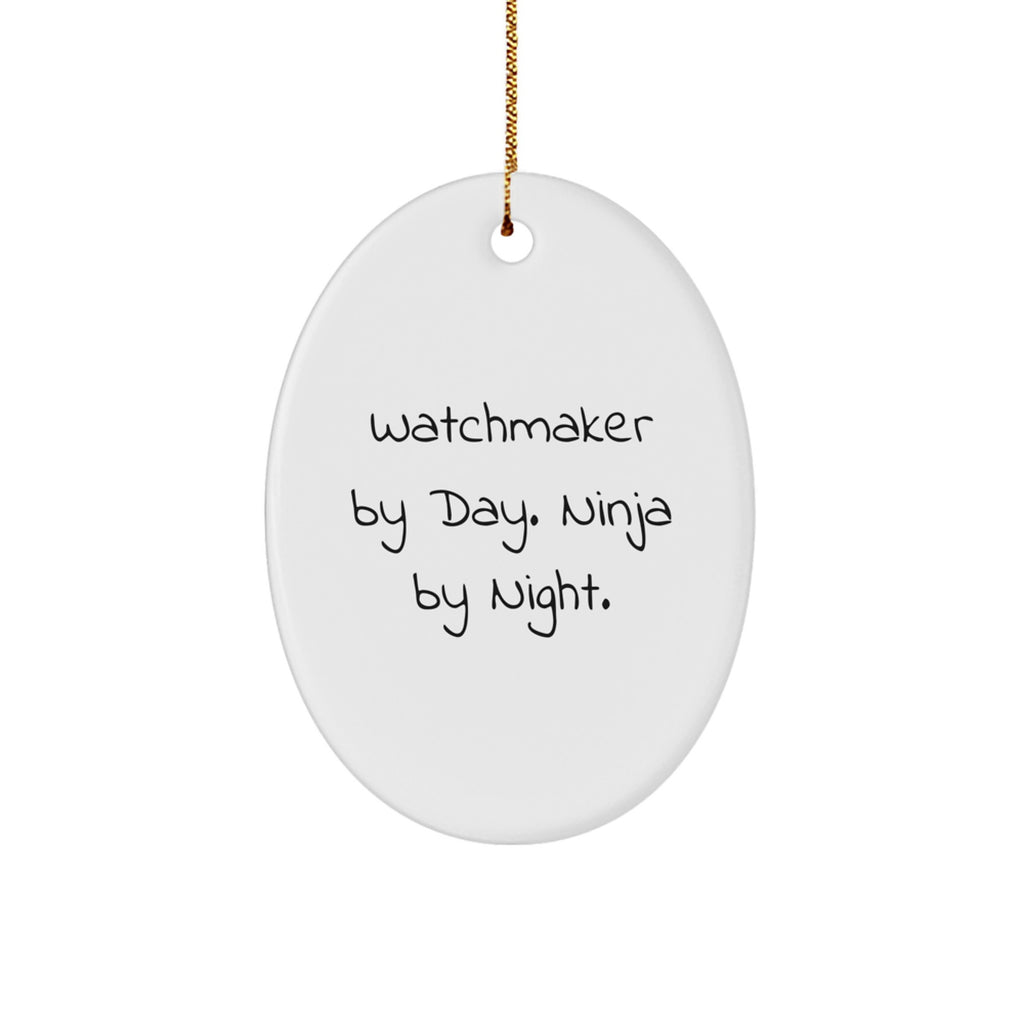 - Get a unique 'Watchmaker By Day. Ninja By Night.' Oval Ornament that adds a touch of elegance and sophistication to your home decor, making it a perfect gift for friends and family members who appreciate the beauty of timekeeping and intricate craftsmanship.