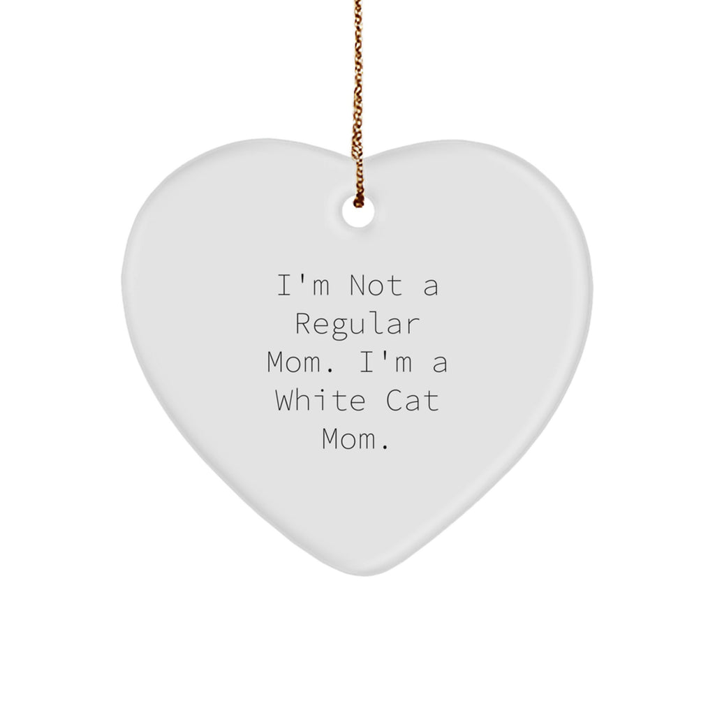 White Cat Mom's Funny Heart Ornament, Gifts from Friends, Perfect for Christmas, I'm Not A Regular Mom. I'm A White Cat Mom.