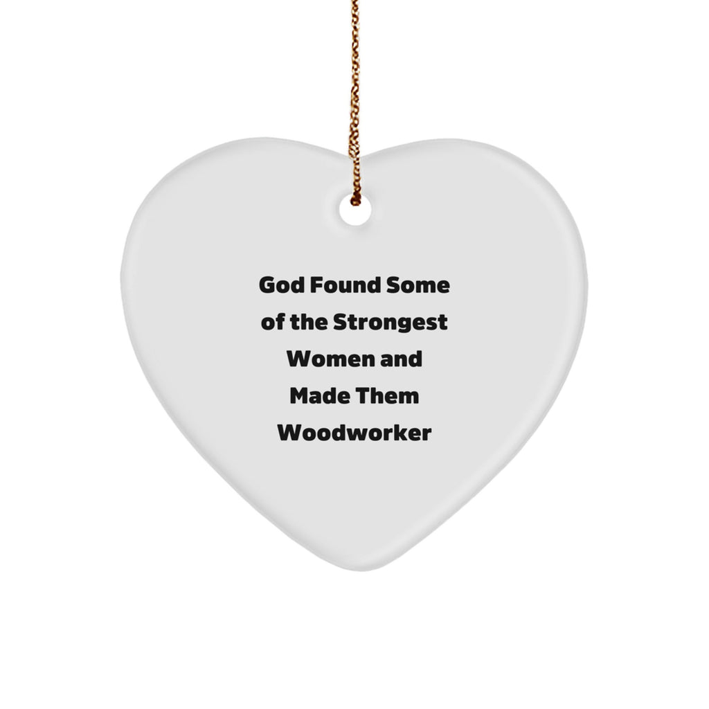 - This 'God Found Some Of The Strongest Women And Made Them Woodworker' Heart Ornament is a unique and thoughtful gift for any Woodworker enthusiast. Made from sturdy MDF with a high-gloss plastic finish, it's vibrant, lightweight, and resistant to breaking. The festive gold cord makes it easy to hang, adding a touch of elegance to any room.