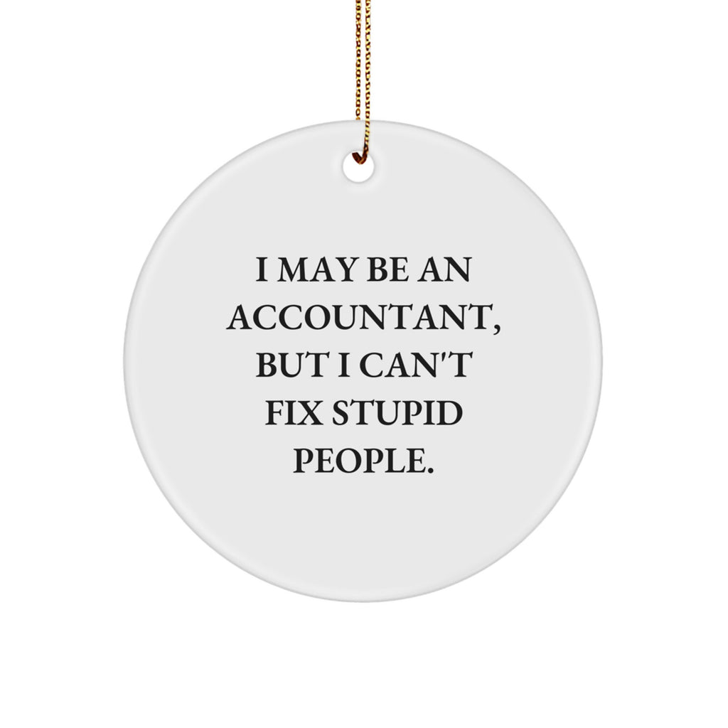 - Bring a smile to your accountant friend's face with this hilarious Circle Ornament featuring the quote 'I May Be An Accountant, But I Can't Fix Stupid People.' - a unique and thoughtful gift for any accounting professional