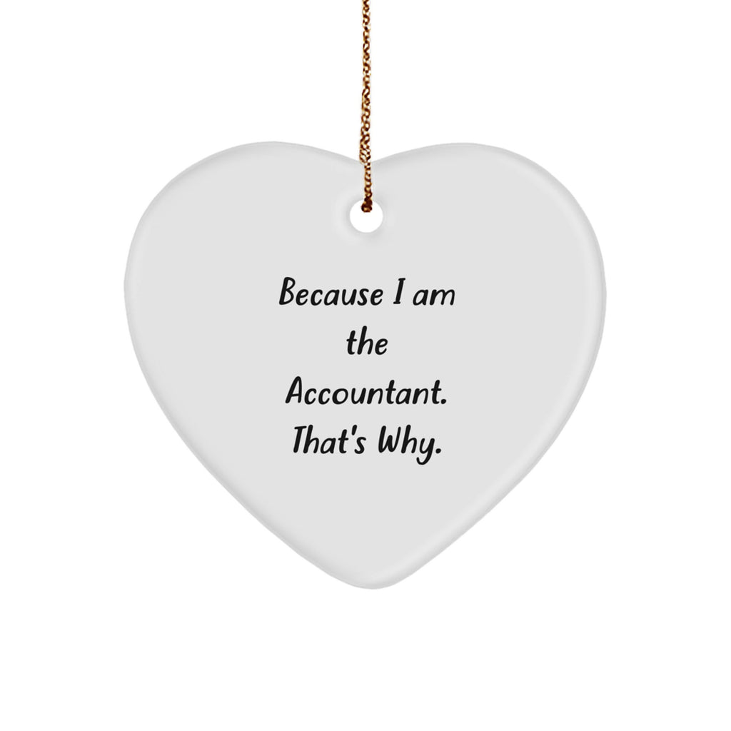 - This funny Heart Ornament is the ideal gift for any Accountant enthusiast, featuring the quote 'Because I Am The Accountant. That's Why.' in a bold and eye-catching design. Made of sturdy MDF with a high-gloss plastic finish, this Heart Ornament is built to last and will withstand even the toughest office environment.