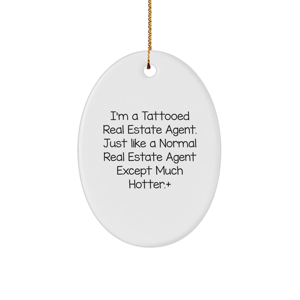 Real Estate Agent Gifts from Men - I'm A Tattooed Real Estate Agent. Just Like A Normal Real Estate Agent Except Much Hotter.+, Oval Ornament for Christmas Unique Gifts