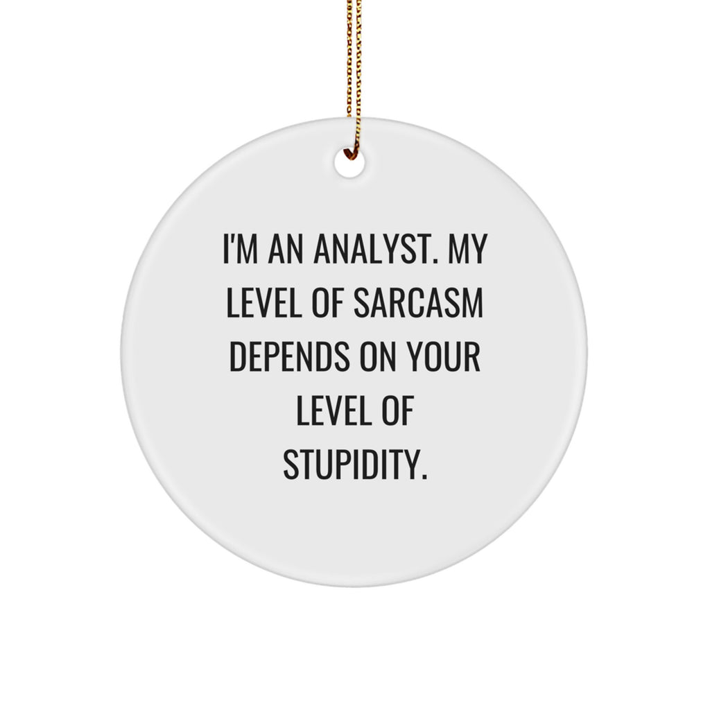 Sarcastic Analyst Gifts from Friends and Family - Christmas Circle Ornament for Men and Women - 'I'm An Analyst. My Level Of Sarcasm Depends On Your Level Of Stupidity.'