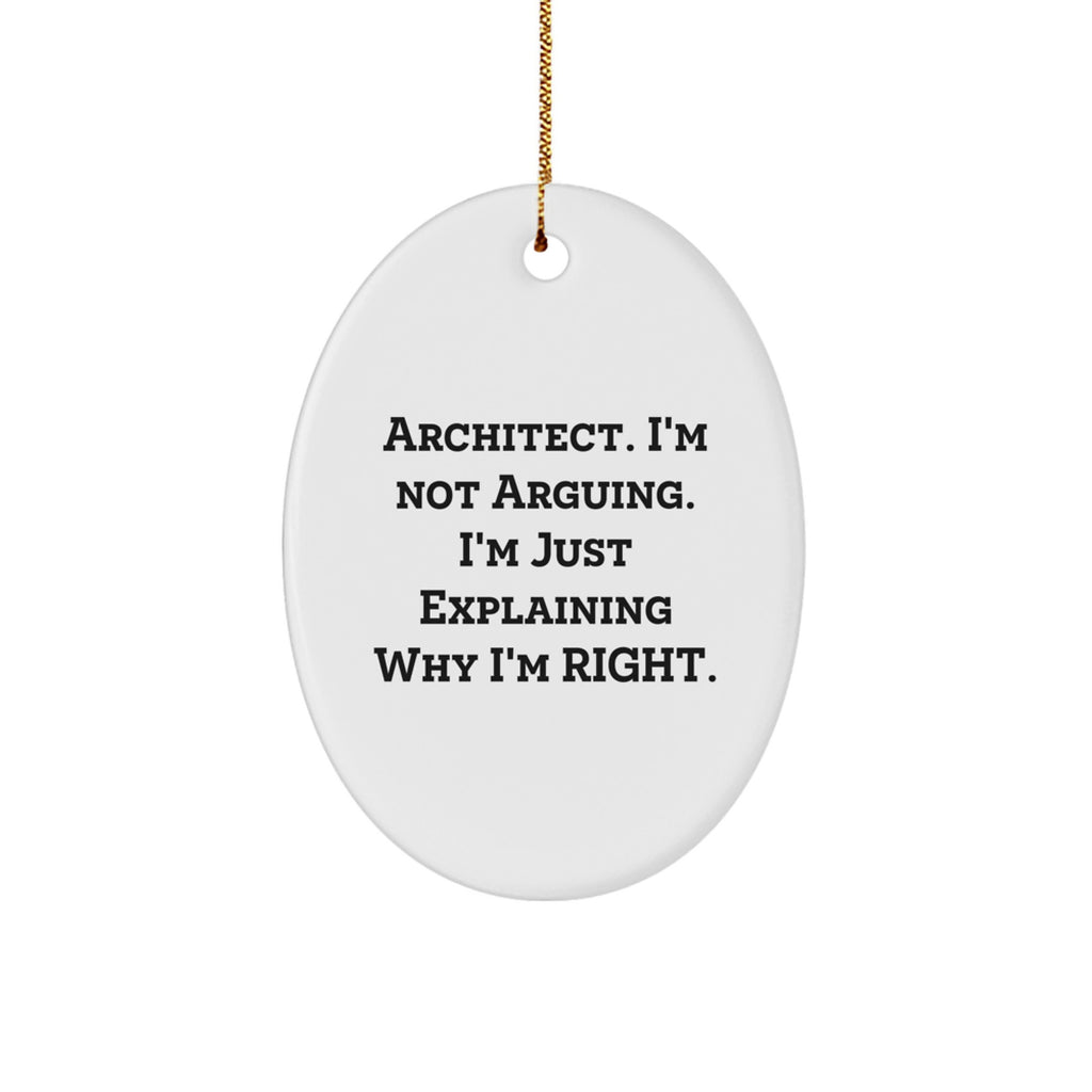 Funny Architect Gifts, Oval Ornament, 'I'm Not Arguing. I'm Just Explaining Why I'm Right.' Christmas Unique Presents from Friends to Architect Men