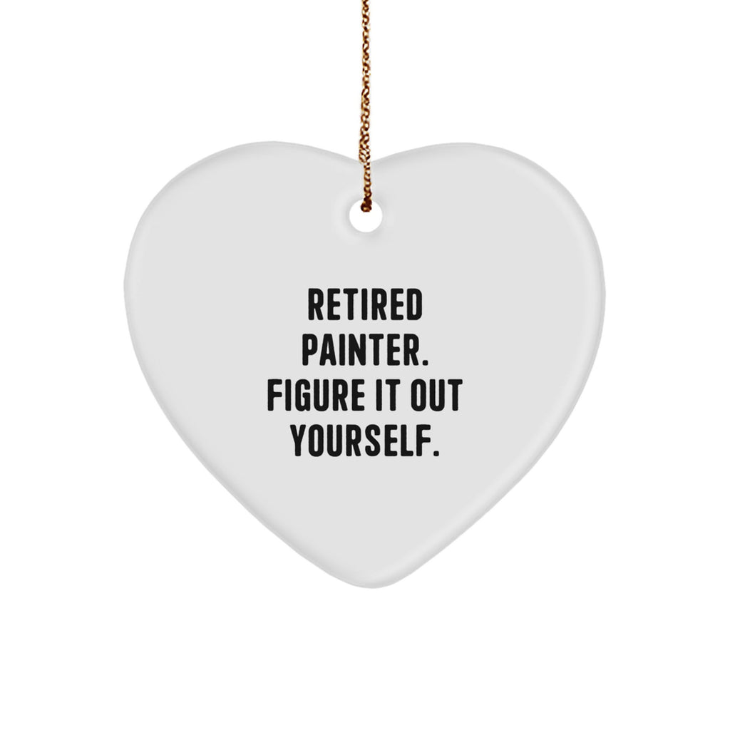 - This funny heart ornament is a unique gift idea for any painter enthusiast. Made from sturdy MDF and printed with high-quality sublimation, it's resistant to breaking and has a beautiful finish. The quote 'Retired Painter. Figure It Out Yourself.' is a funny and relatable phrase that any painter can appreciate. It's a great way to poke fun at the challenges of being a painter, and it's a reminder that even retired painters can still have a sense of humor.