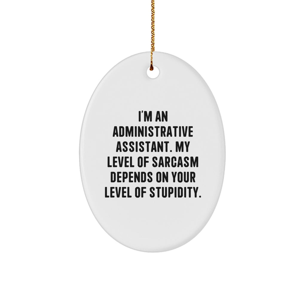 - This funny Oval Ornament is the perfect way to show your love and appreciation for your Administrative Assistant friend or family member. Made from sturdy MDF with a high-gloss plastic finish, it's lightweight and resistant to breaking, making it perfect for households with children or pets.