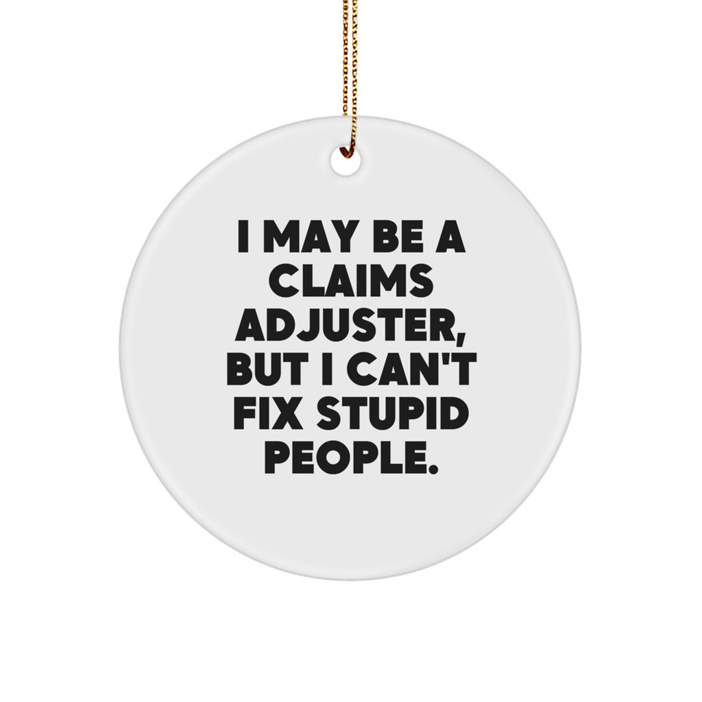 Funny Claims Adjuster Gifts for Him from Family - I May Be A Claims Adjuster, But I Can't Fix Stupid People. Circle Ornament for Christmas
