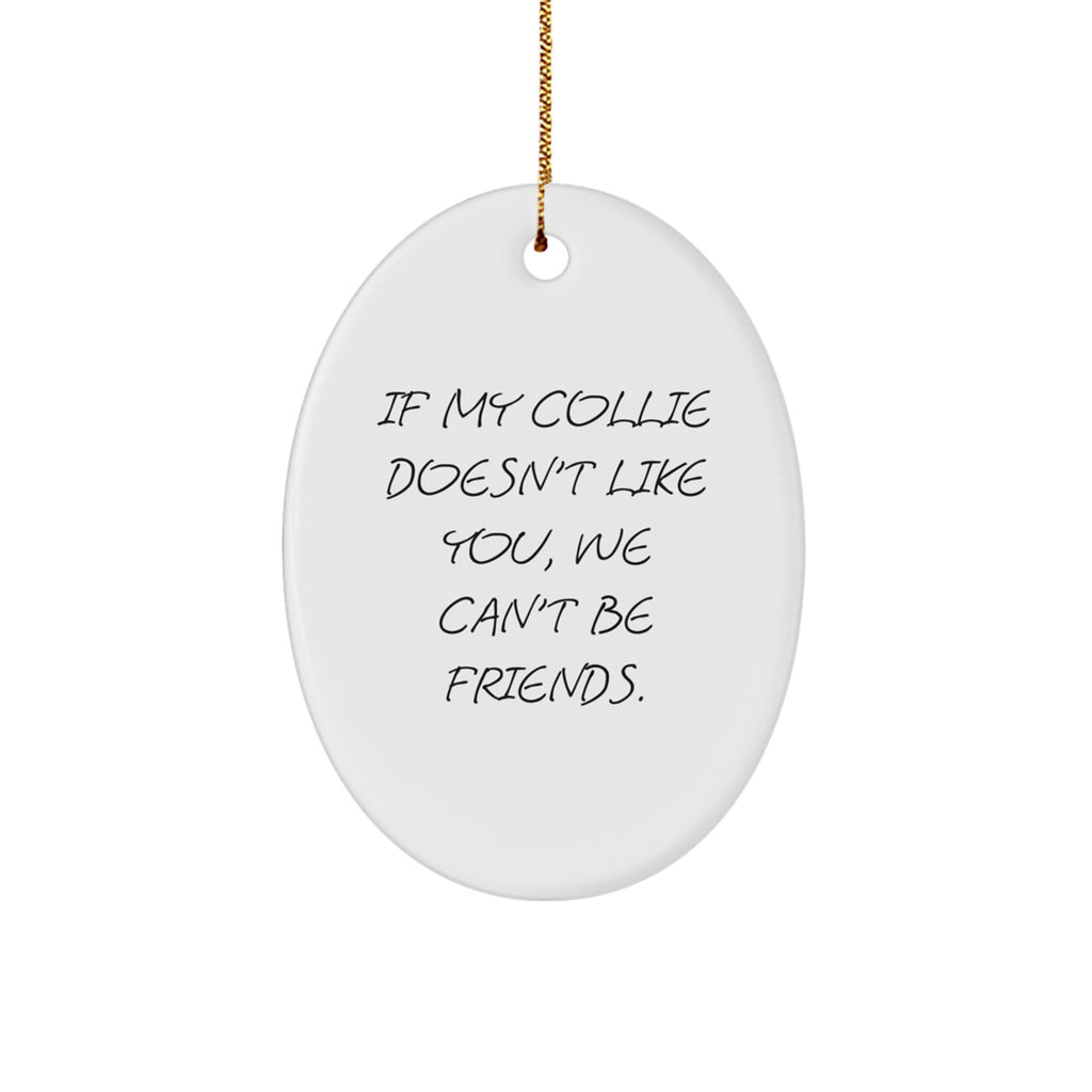 - This funny Collie Dog oval ornament is a thoughtful gift idea for Collie Dog lovers, perfect for friends, family, or coworkers who adore Collie Dogs.